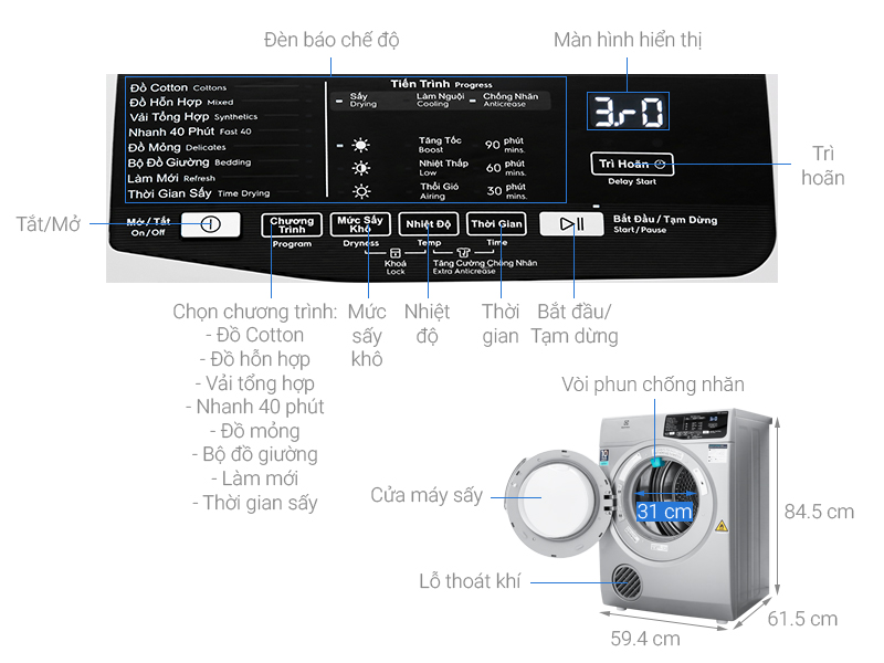 Chức năng này tiện lợi khi bạn cần sấy gấp những bộ trang phục đi làm hoặc khi có ít quần áo để sấy.
